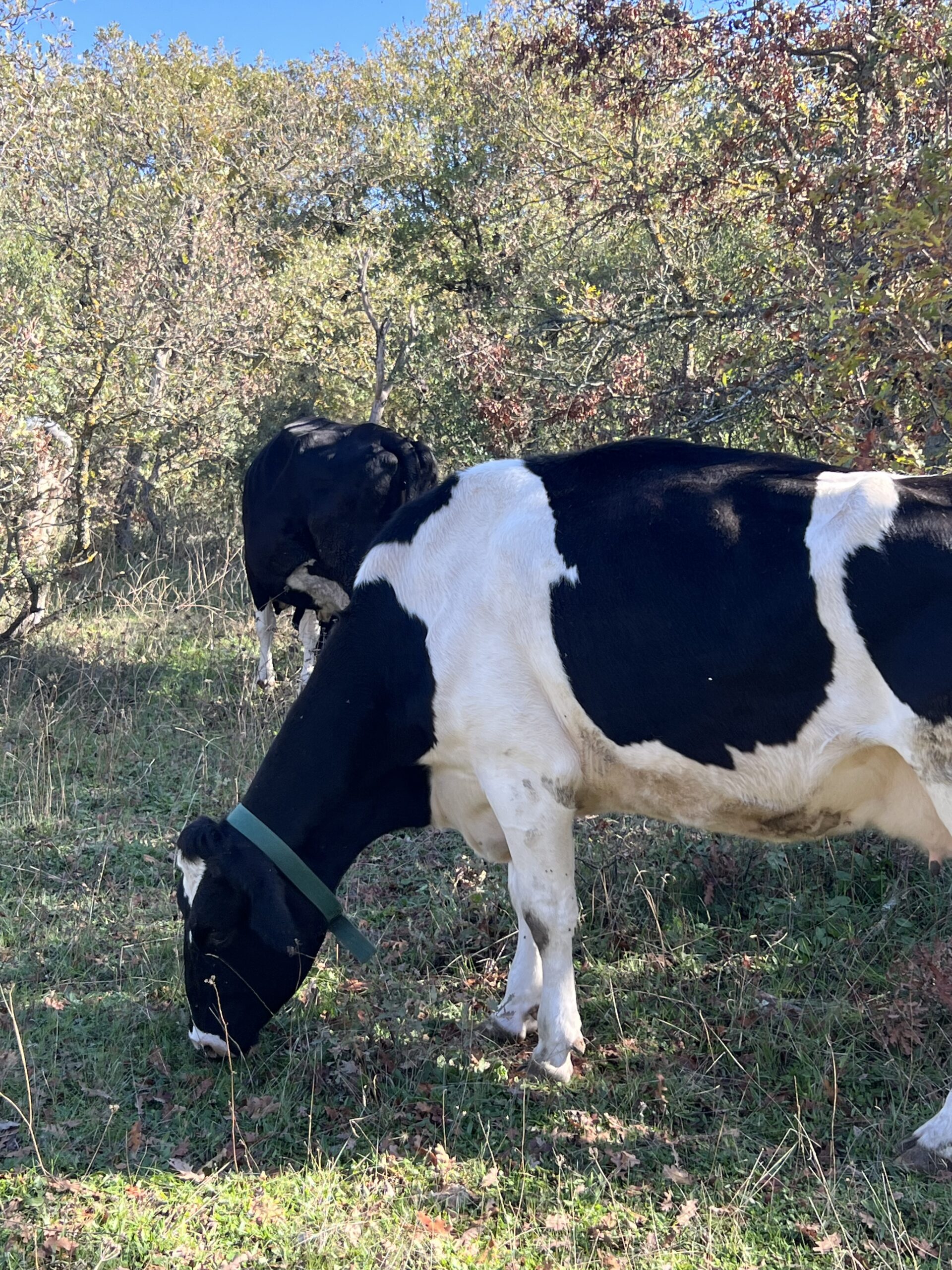 Alt text in Turkish: Sabahın erken saatlerinde, Güler Çiftliği'nde yeşil bir otlakta otlayan inekler. Doğal ve taze çiftlik ürünlerinin kaynağını simgeliyor. Güneşin alacakaranlık ışıklarıyla süslenmiş sağlıklı çiftlik yaşamı.